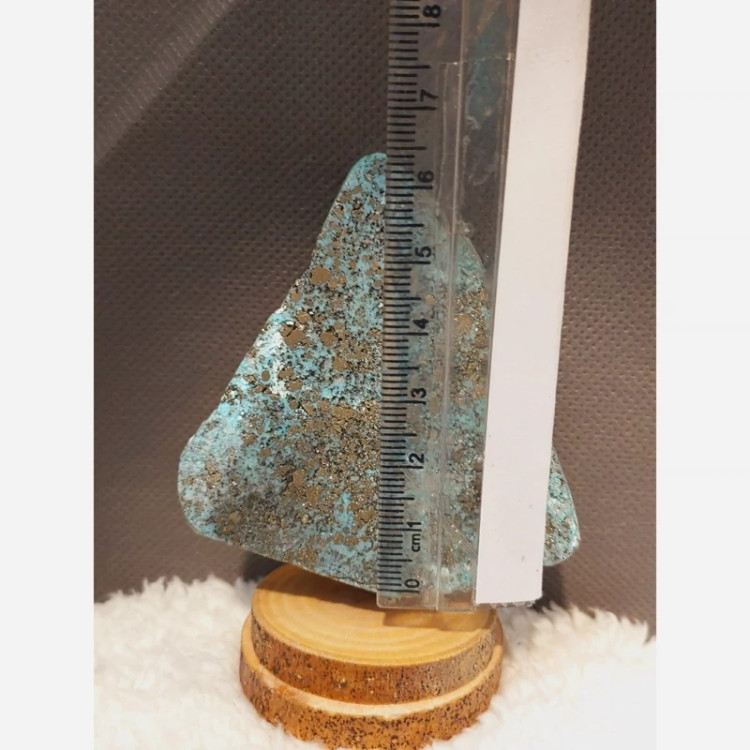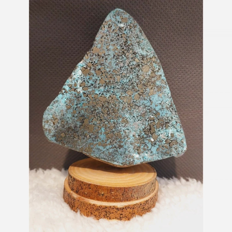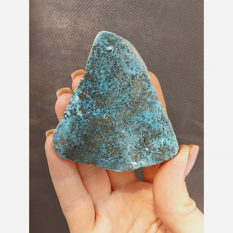 ترکیبی کمیاب از **فیروزه** (نماد اصالت و آرامش) و رگههای درخشان **پیریت** نماد فراوانی میباشد.
