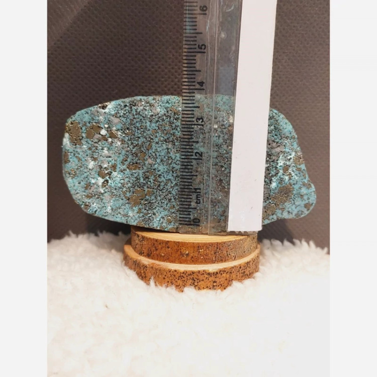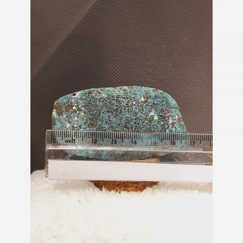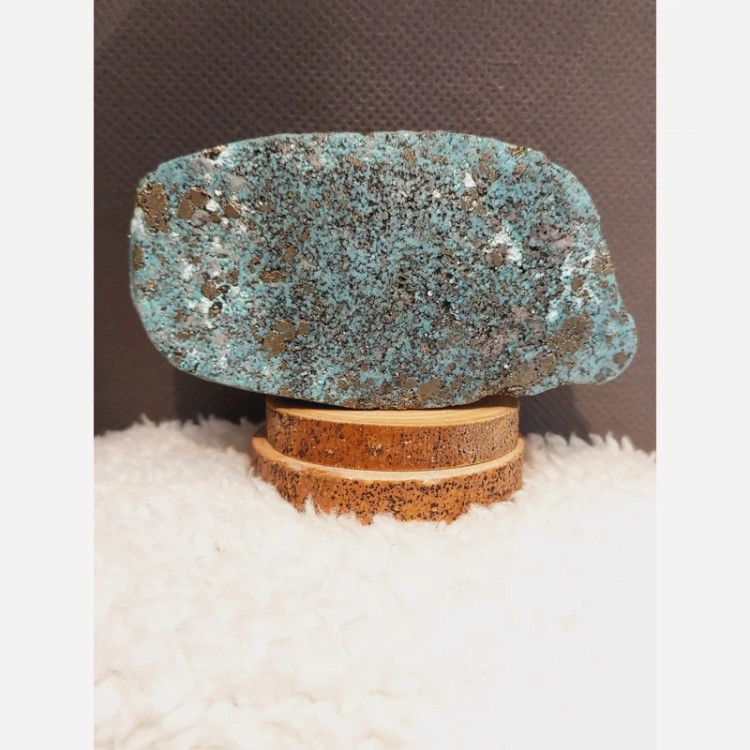 *این قطعه ترکیبی کمیاب از **فیروزه** (نماد اصالت و آرامش) و رگههای درخشان **پیریت** نماد فراوانی است.