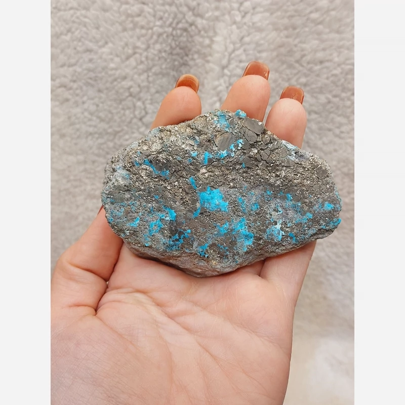 سنگ فیروزه طبیعی با. رگه های پیریت (طلای ابلهان )