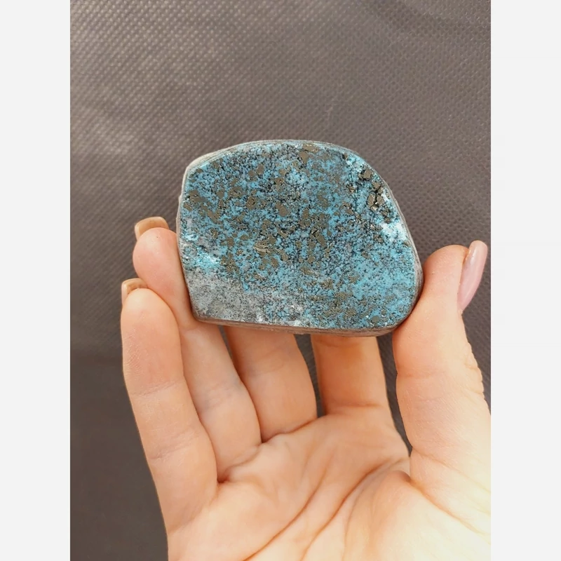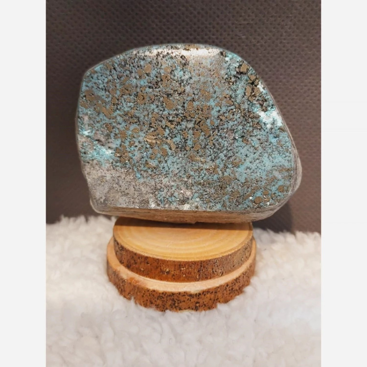 سنگ فیروزه طبیعی با رگه های پیریت طلایی