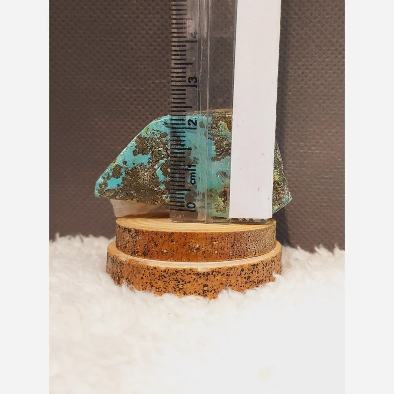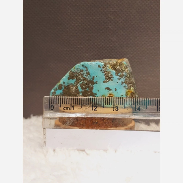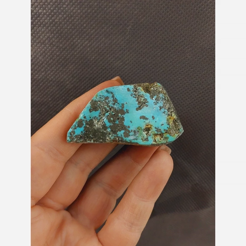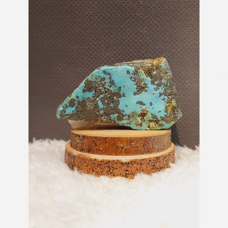 💎این قطعه ترکیبی کمیاب از **فیروزه** (نماد اصالت و آرامش) و رگههای درخشان **پیریت** است. تضاد رنگ آبی آسمانی با درخشش فلزی طلایی، جلوهای شاهکار به آن بخشیده که نگاه هر بینندهای را خیره میکند.