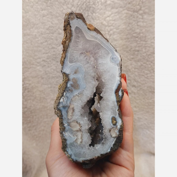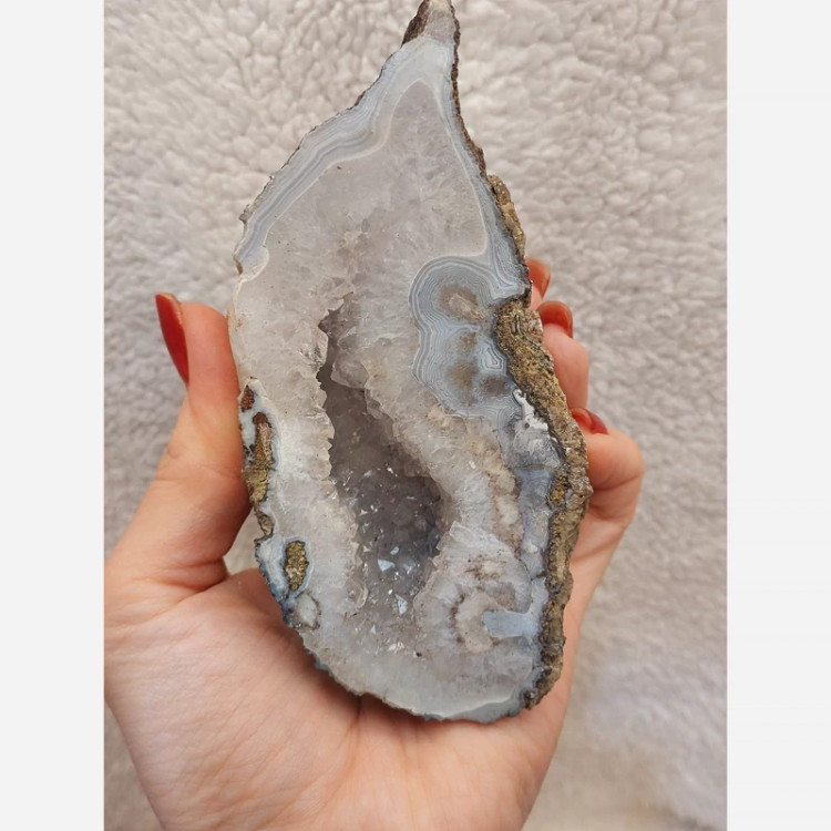 ژئود عقیق: جادوی طبیعت در دستان شما!** ✨ **تعادل و پایداری:** عقیق موجود در لایههای این سنگ، نماد ثبات و آرامش است و به شما کمک میکند تا در چالشهای زندگی، تعادل روحی خود را حفظ کنید. 🌟 **تقویت انرژی محیط:** فضای توخالی و بلورین ژئود، انرژیهای مثبت را جمعآوری و چندین برابر کرده و در فضای خانه یا محل کار شما پخش میکند. 🛡️ **سپر محافظ:** این سنگ مانند یک فیلتر عمل کرده و استرس و افکار منفی را از محیط اطراف جذب و خنثی میکند. 🧼 **پاکسازی آسان:** برای شارژ مجدد انرژی این ژئود زیبا، آن را به مدت چند ساعت زیر نور ملایم ماه قرار دهید یا به آرامی با آب ولرم و روان بشویید و سپس با پارچهای نرم خشک کنید.